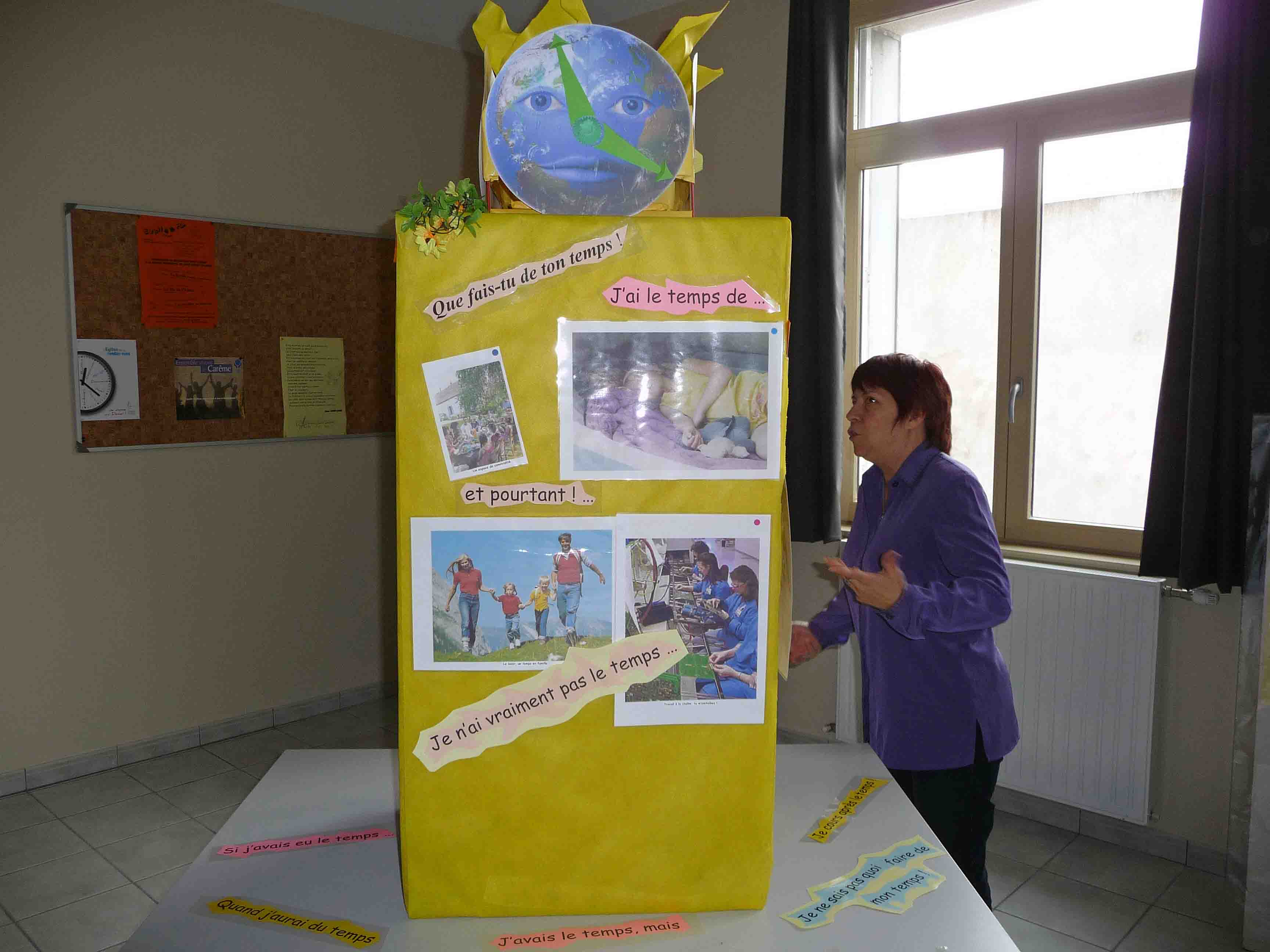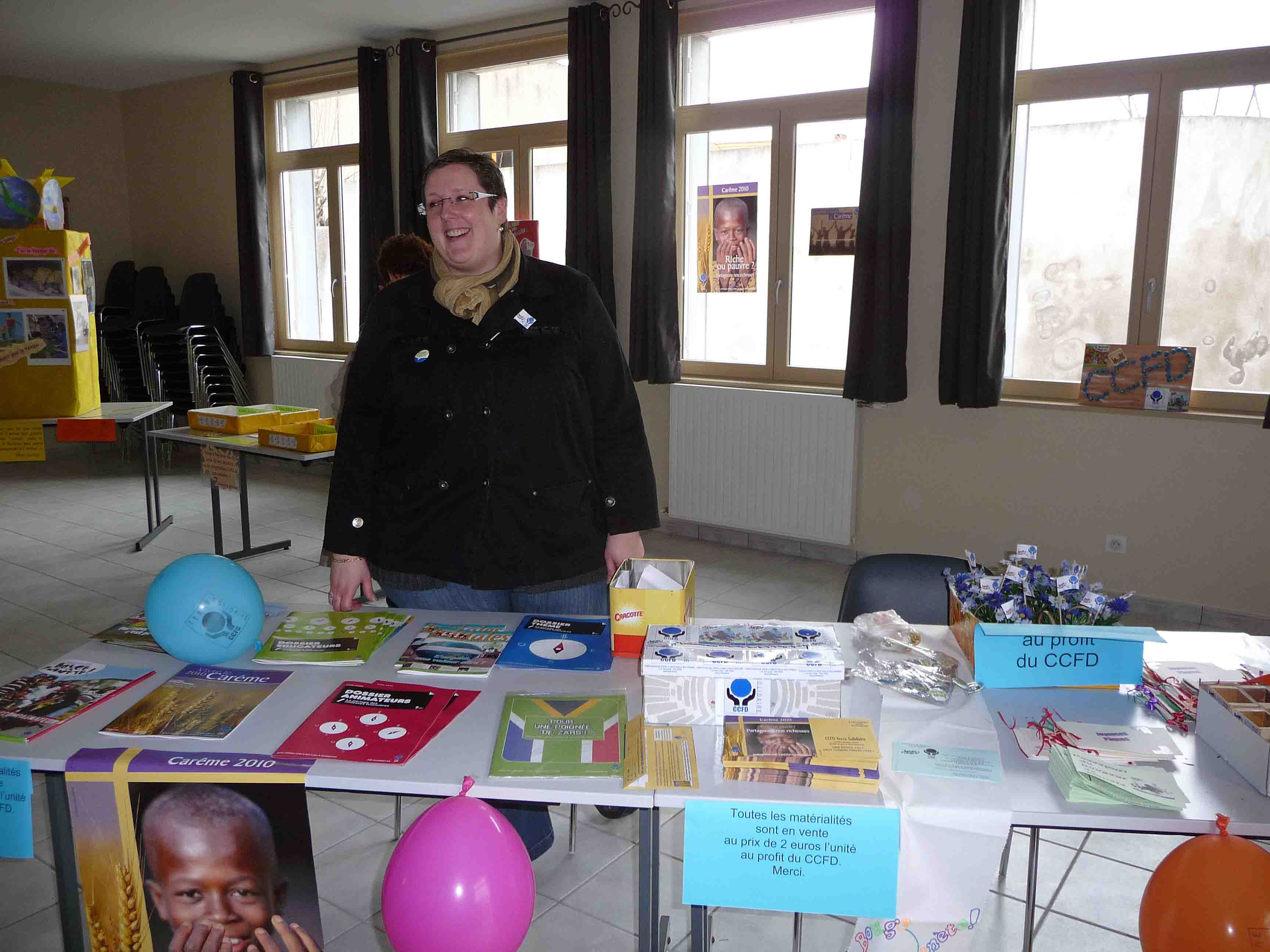 Sylvie au présentoir avec la documentation