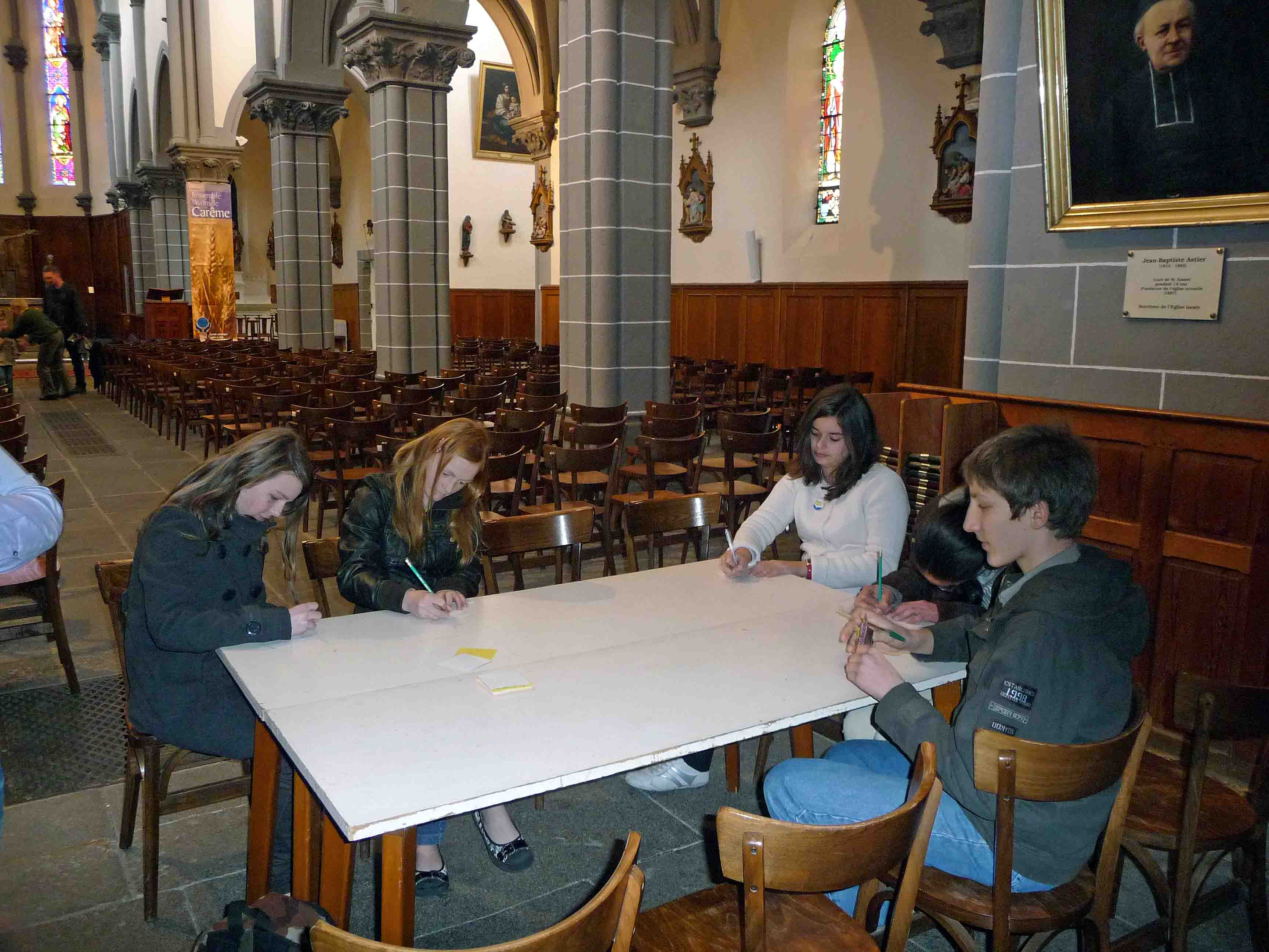 Merci aux jeunes de la paroisse, Marie, Damien, Jean-Charles et Jonathan qui ont donné de leur temps pour animer différents ateliers de découverte de notre planète. Des jeux ludiques ont permis aux enfants de découvrir que l'énergie, l'eau, l'alimentation sont des besoins élémentaires de la vie et que tout doit et peut être fait pour que chacun puisse en bénéficier avec plus d'égalité et de justice.