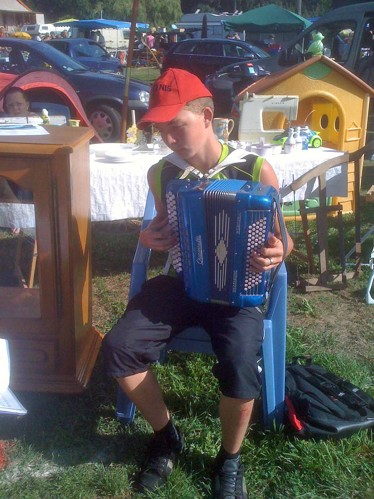 C'est sous un soleil chaleureux et un ciel bleu que la traditionnelle brocante de Rouillas-Bas a débuté dans une ambiance de fête. Alors, dans les allées multicolores où tous les objets les plus disparates brillaient de mille feux, un jeune musicien avec son accordéon a donné encore plus de couleurs à cette journée.