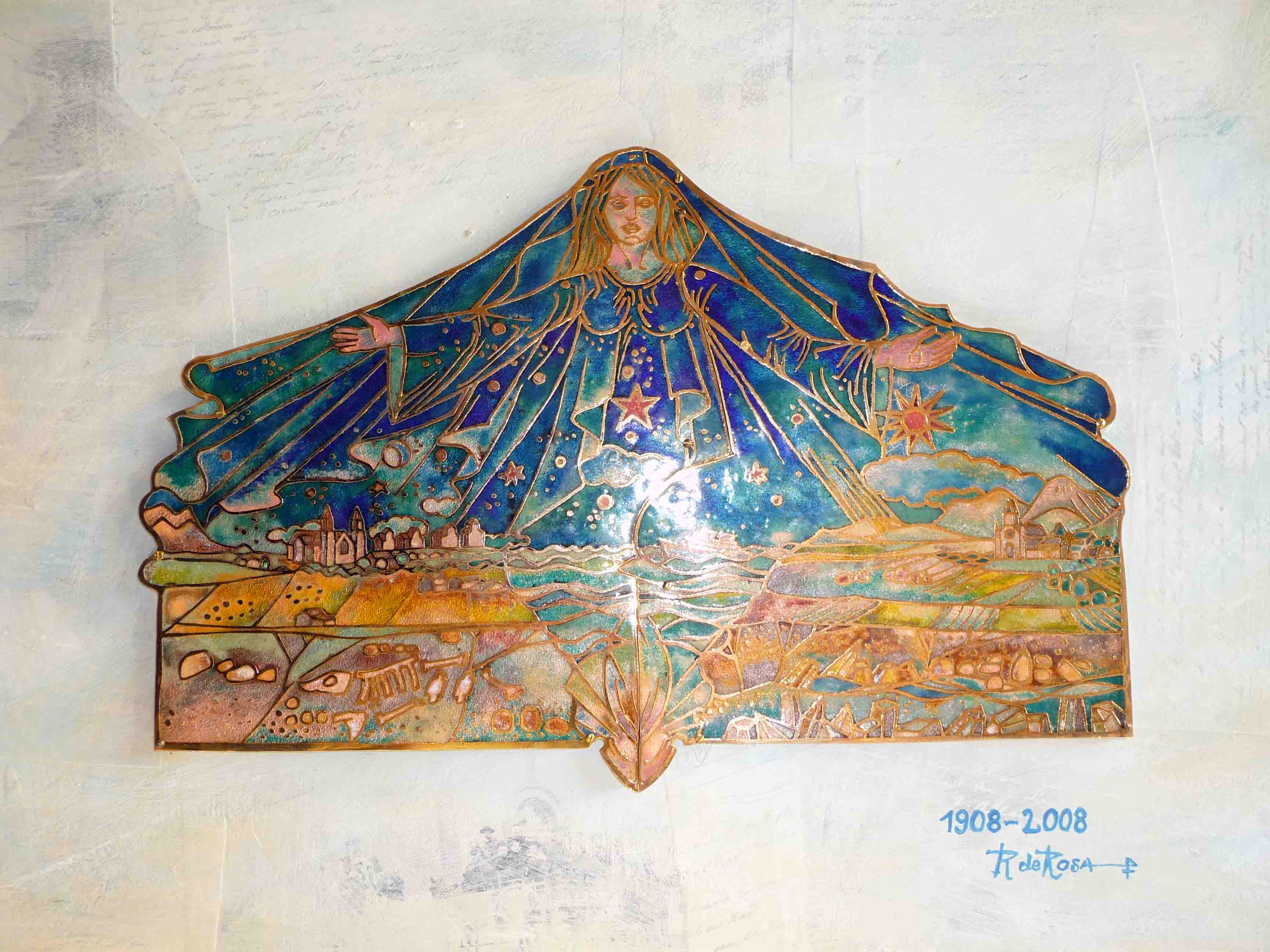 Oeuvre en émail sur cuivre (technique de champ levé) réalisée dans le cadre du centenaire de Notre Dame d'Auvergne