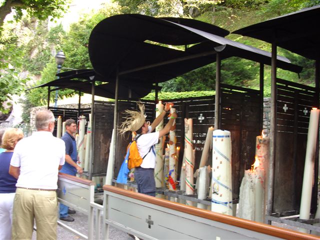 Ils allument le cierge près de la grotte