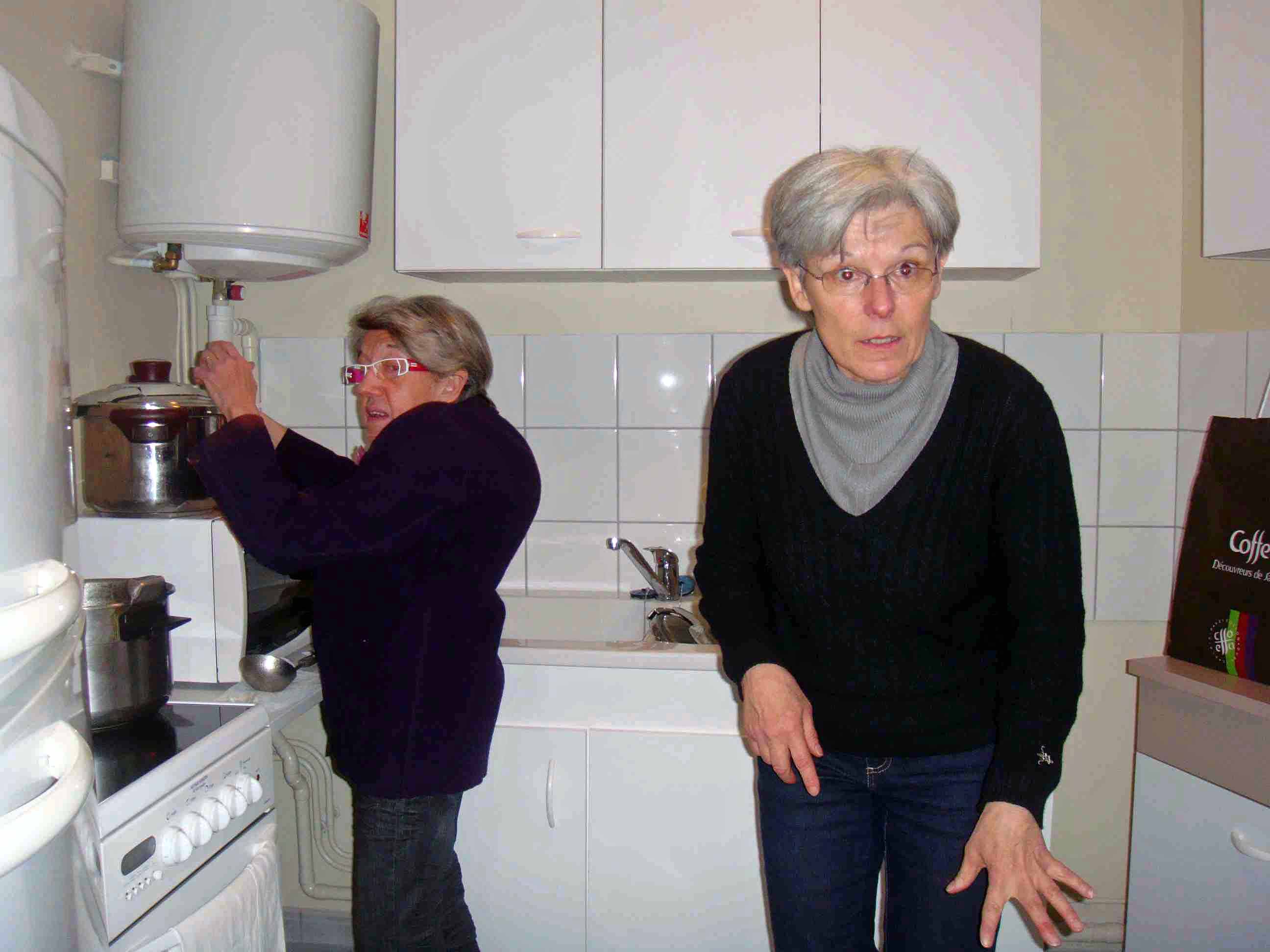 Mireille et Nicole très occupées à faire chauffer la soupe